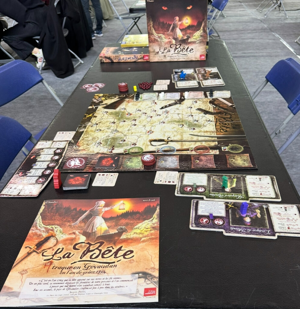 Avant de plonger dans le vif du sujet, faisons les présentations en bonne et due forme. LA BÊTE, c’est un jeu créé par les esprits fertiles de Johannes Goupy et Corentin Lebrat, illustré avec talent par Camille Chaussy et édité par BLAM ! Studio. Ce petit bijou ludique est annoncé pour 1 à 5 joueurs, à partir de 12 ans, et promet des parties d’environ 1 heure. Sur le papier, ça ressemble à un jeu de bluff et de déduction asymétrique, mais en réalité, c’est bien plus que ça ! LA BÊTE vous plonge dans une ambiance historique et immersive, inspirée de la légende de la Bête du Gévaudan. Oubliez les loups-garous et autres villageois un peu trop sages, ici, on traque une créature bien plus mystérieuse et terrifiante. Un joueur incarne La Bête, une entité insaisissable semant la terreur, tandis que les autres joueurs sont des enquêteurs royaux, chacun avec ses propres compétences et son rôle à jouer dans la traque. Le but du jeu ? Pour La Bête, faire un maximum de victimes sans révéler sa véritable identité. Pour les enquêteurs, collaborer, déduire et anticiper les mouvements de la créature pour limiter les dégâts et la démasquer avant qu’il ne soit trop tard. Un cocktail explosif de tension, d’immersion, de rôles cachés et de stratégie qui promet des parties absolument palpitantes ! Si vous aimez les jeux qui vous font cogiter, bluffer et vibrer, LA BÊTE est faite pour vous !